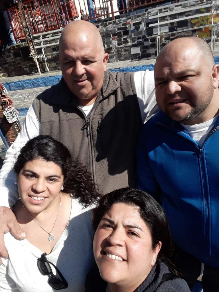 Juan Becerra junto a su padre y hermanas