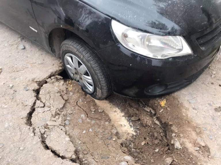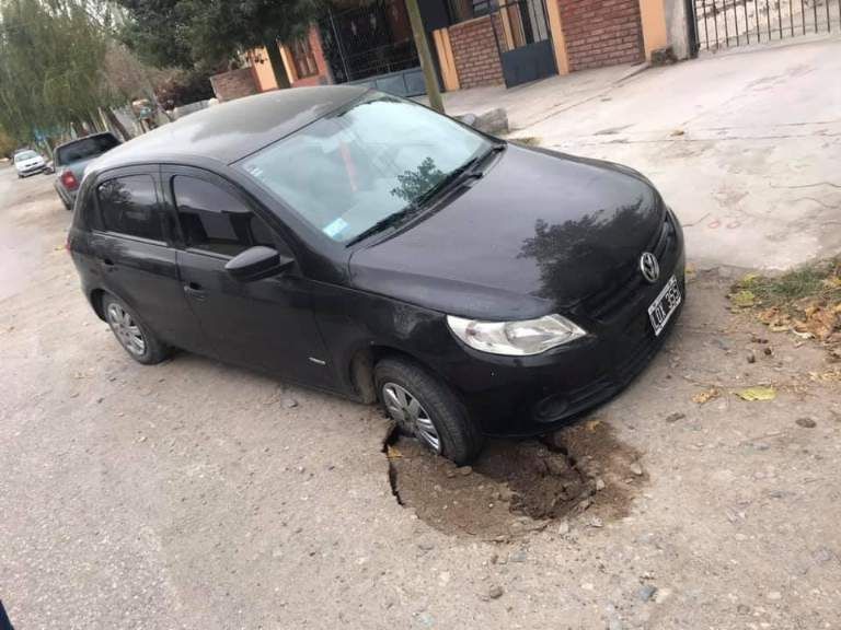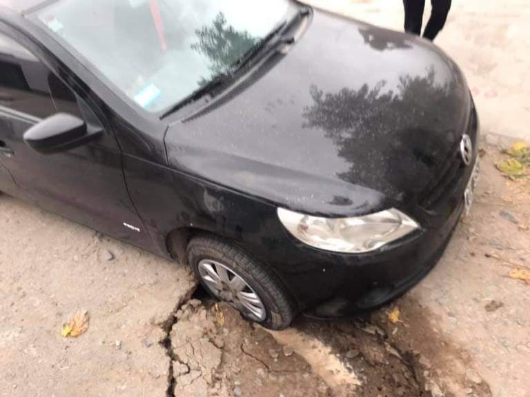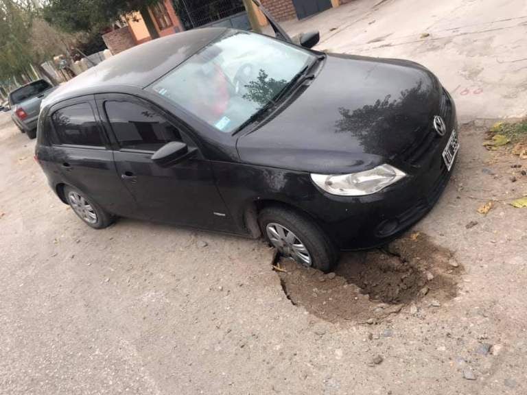 No fue buena fortuna la de Héctor Esteso de Caucete, a quien se le hundió el pavimento mientras sacaba su auto. El hecho ocurrió mientras sacaba su Volkswagen Gol oscuro de la cochera de su casa ubicada en Rivadavia entre Rawson y Urquiza, en el departamento caucetero.