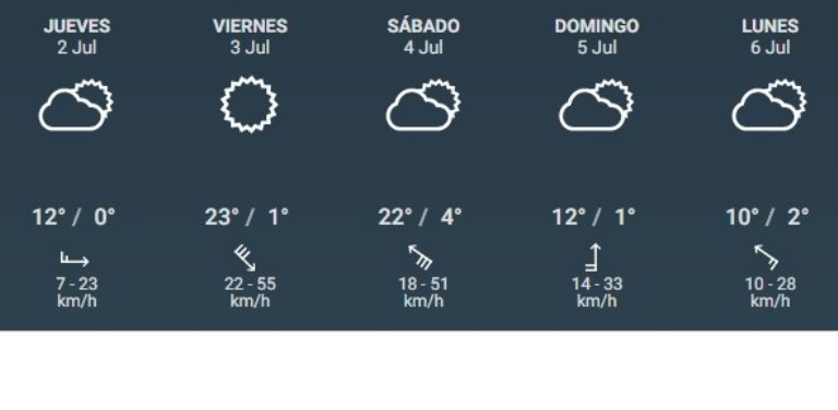 Sin embargo, habrá que seguir de cerca la evolución del estado del tiempo en San Juan, ya que un fuerte viento Zonda está pronosticado para el próximo viernes. Las condiciones del miércoles continuarán hasta el viernes, cuando en horas de la tarde un ventarrón de hasta 55 kilómetros por hora arribe al Gran San Juan. Posteriormente, la réplica del viento Sur se hará presente con la misma virulencia en horas de la madrugada del sábado.