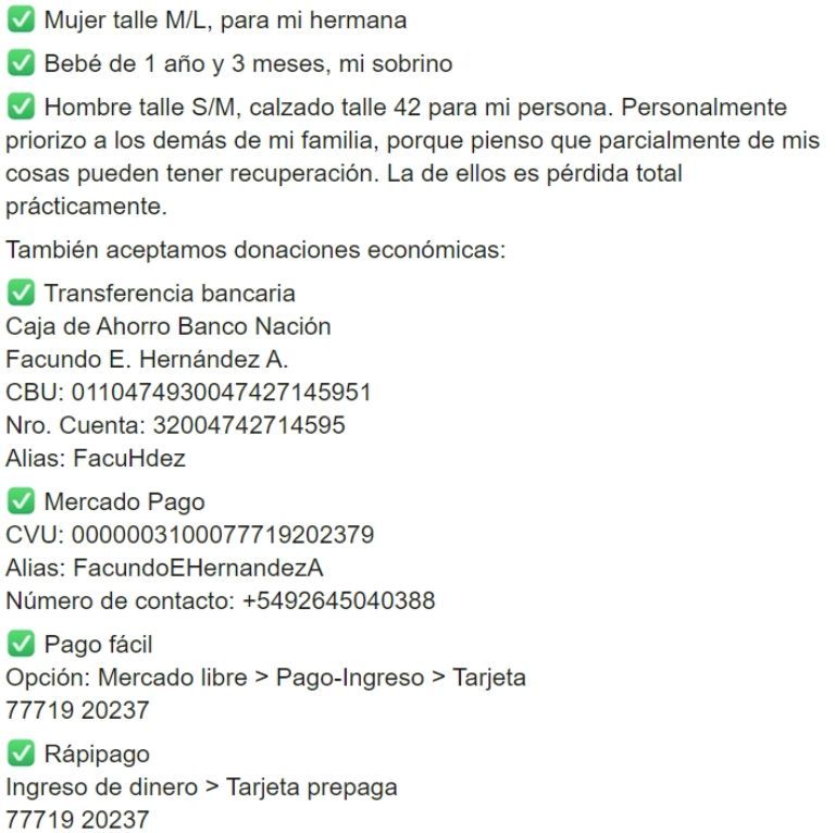 Es por eso que iniciaron una campaña para ayudar a la familia afectada con ropa, mantas, alimentos o dinero.