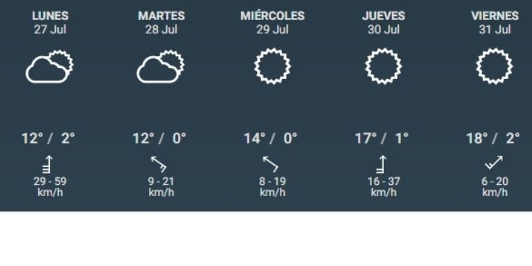 Sin embargo, el lunes las buenas condiciones cambiarán notablemente con la llegada de fuertes ráfagas de viento Sur. En horas de la mañana, vientos de hasta 60km/h llegarán a la provincia trayendo consigo algunas nubes y el descenso de la temperatura. Desde el martes, las condiciones comenzarán a mejorar nuevamente hasta llegar al viernes.