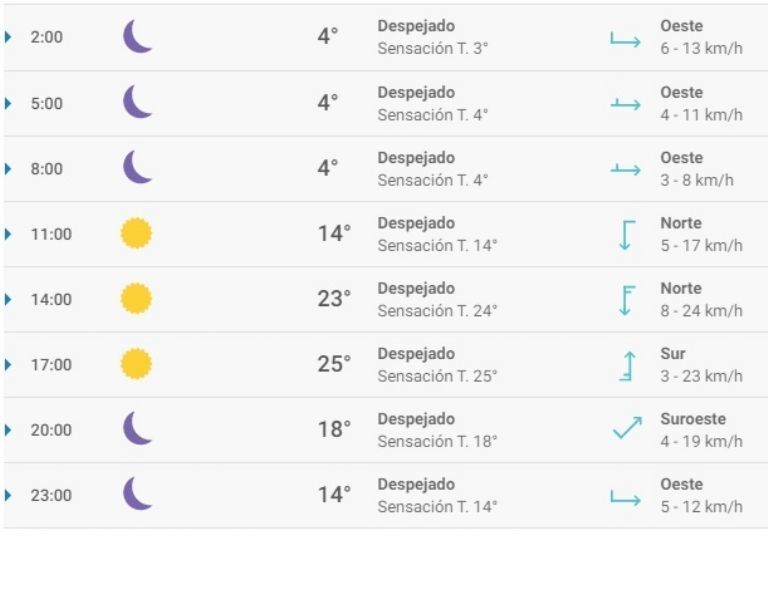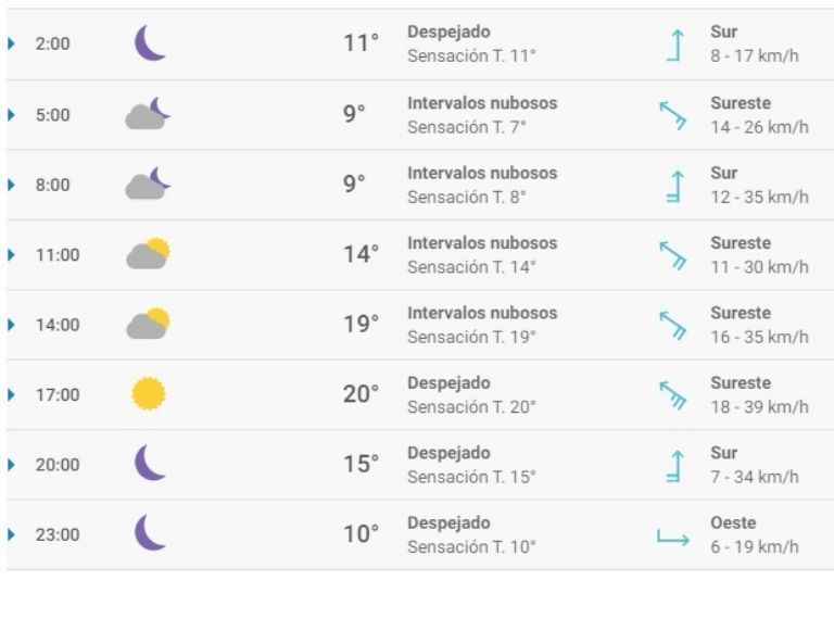 El domingo las temperaturas bajaran notablemente y tendremos de nuevo cielos despejados. Predominará el viento de norte y de sureste durante el fin de semana, con rachas máximas de hasta 40 km/h el domingo.