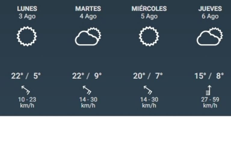 Los primeros días de la semana próxima seguiremos con altas temperaturas, cuyas máximas estarán por encima de los 20º y los cielos despejados. Recién para el jueves se espera la llegada de un fuerte viento Sur que cambiaría las condiciones.