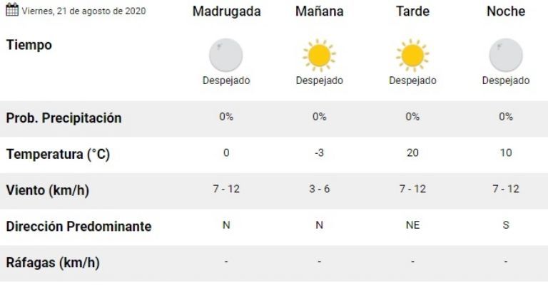 Las jornadas típicas en San Juan son las que tienen mañanas frescas y tardes cálidas y soleadas. Lo que sucede es que, al no haber nubosidad, la amplitud térmica es muy grande: en la madrugada cae la helada y en la tarde el sol calienta. Al parecer, este viernes no será la excepción.