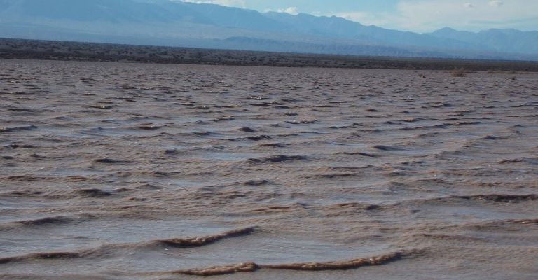 La Pampa enlagunada fue un fenómeno que se dio y sorprendió en 2016, tras tormentas cercanas y una fuerte creciente que bajó. Por la composición del suelo, de una arcilla muy fina, el agua quedó acumulada por algunos días y hasta hubo deportistas que intentaron hacer kitsurf. Poco después el sol se encargó de ir secando lentamente el lugar y volvió a dejar el suelo liso y seco como todos lo conocen.