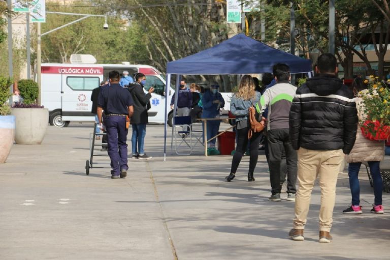 Desde temprano los sanjuaninos se acercaron a las dos carpas que montó desde este martes y hasta el sábado el Ministerio de Salud Pública para testear el coronavirus en la provincia. Se trata de los puestos donde la gente puede hacer voluntariamente y de forma gratuita el test rápido que consiste en un pinchazo en el dedo y el análisis mediante una tira reactiva, que demora unos 15 minutos en arrojar resultados. Sirve para saber si la persona desarrolló anticuerpos para combatir la enfermedad, al estar en contacto con el virus. Este examen es diferente al PCR, que se realiza mediante un hisopado y demora al menos 8 horas en dar resultado, que es el que se usa para saber si la persona es positiva de COVID-19.