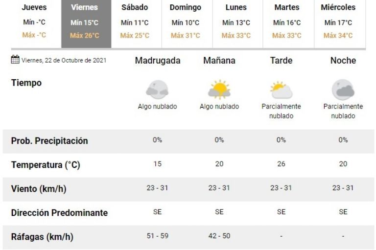 SUSCRIBITELa semana viene calurosa. Pero un ventarrón cambiará el panorama del tiempo, por lo menos durante este viernes. Prevén ráfagas de hasta 60 kilómetros por hora.