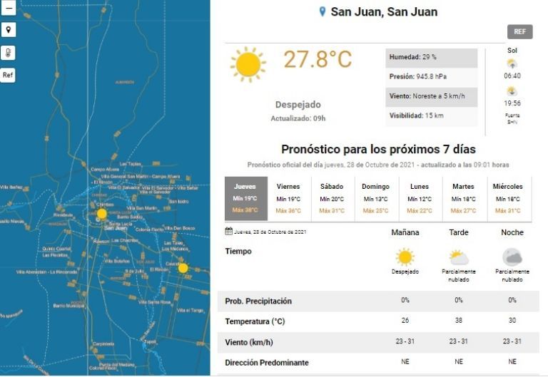 Los sanjuaninos se preparan para una jornada de jueves con calor intenso, con 38 grados de máxima prevista por el Servicio Meteorológico Nacional, y desde temprano el sofocón se hizo notar, con casi 28 grados a las 9 de la mañana.