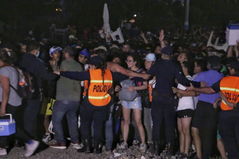 “Comenzamos a pedirle a la gente de la organización que tuviera en cuenta esa situación para ver si podían adelantar la venta de entradas”, comentó el funcionario, y continuó “a todo esto, comenzaron a llegar grupos de jóvenes, vinculados muchos a barras bravas de clubes y que quisieron mezclarse entre la gente. Eso motivó a que nosotros tuviésemos que comenzar a armar un poco lo que sería las columnas que entraban al Parque Industrial en los distintos vallados. Ahí es donde estos grupos comenzaron a causar conflictos, muchos de ellos en los videos viralizados”.