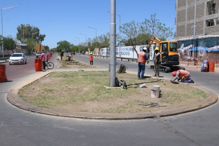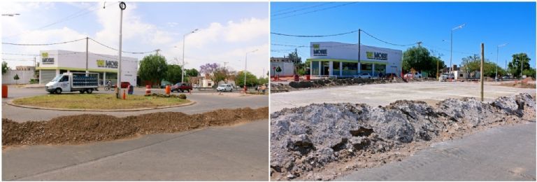 En cuanto al nuevo cruce donde se focalizan las labores, en la 9 de Julio, se pueden apreciar máquinas rompiendo el concreto, obreros sacando los panes de pasto (que se reutilizarían) y trabajando sobre la rotonda, mientras que la zona está señalizada indicando desvíos y medidas a tomar en cuenta por los conductores.