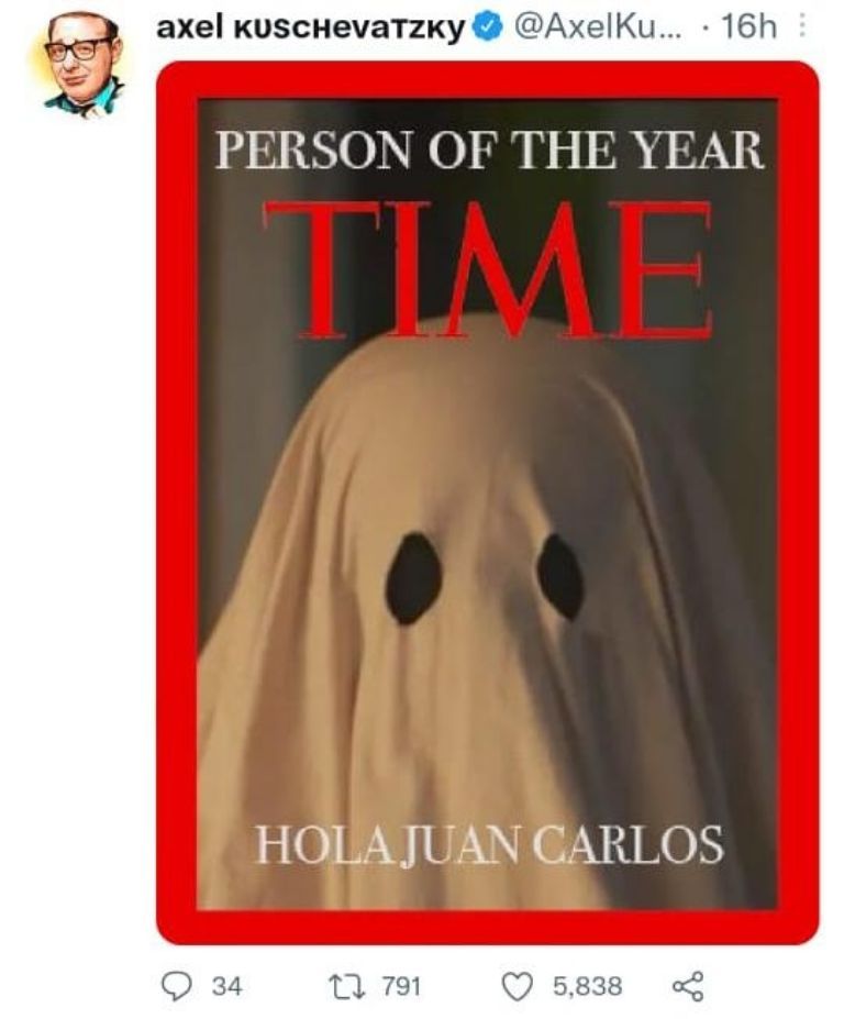 A ese espíritu le dieron un reconocimiento "fake". El productor cinematográfico Axel Kuschevatzky subió a sus redes sociales una imagen del fantasma del viral como personaje del año de la prestigiosa revista Time.