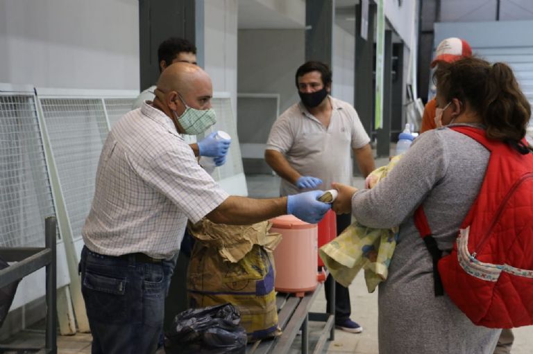 En el Polideportivo pocitano se vieron familias ubicadas en camas con distanciamiento social y asistidas con alimentos desde primera hora.