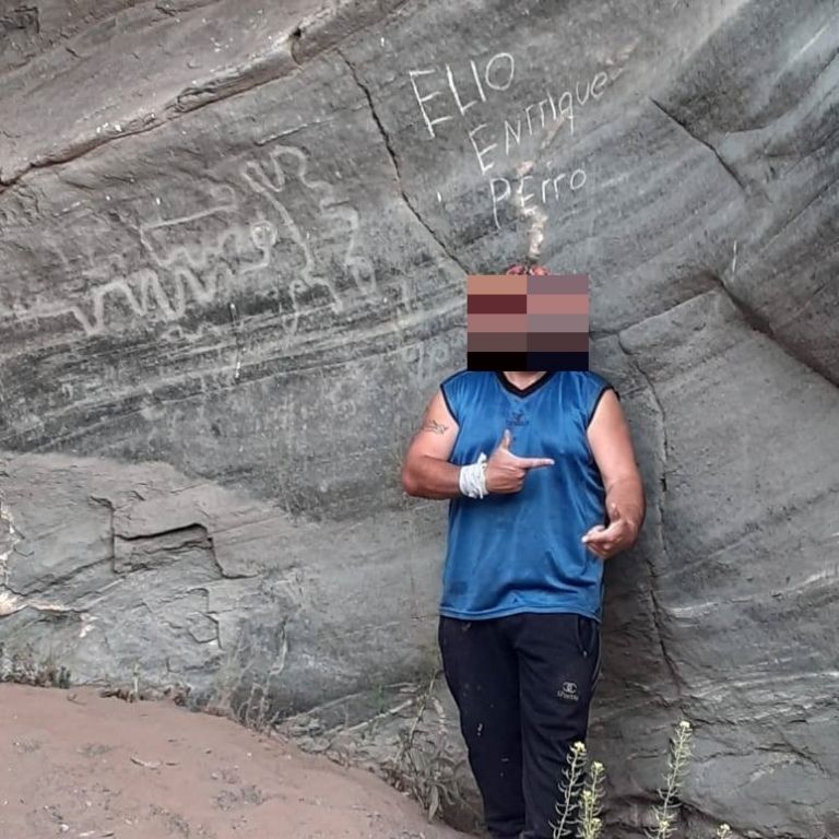 En la publicación, escribieron: "Siempre hay gente inadaptada como este Elio "Enrique" que no cuidan y respetan los lugares que visitan". Fue en el "Lagar Grande", ubicado en cerca del paraje de la Difunta Correa, en Caucete.