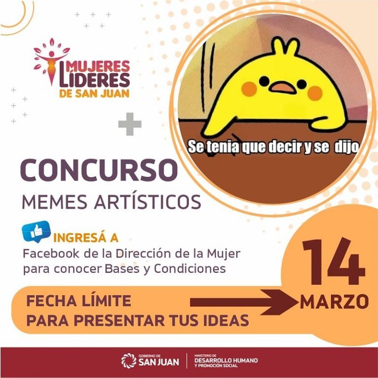 El Ministerio de Desarrollo Humano y Promoción Social a través de la Dirección de la Mujer, dependiente de la Subsecretaria de Promoción, Protección y Desarrollo Social, realizó el lanzamiento de una amplia agenda de actividades que se desarrollarán durante todo el mes de marzo. Entre estas, habrá tres concursos de convocatoria abierta, un concurso de bandas musicales, murales y… ¡de memes!