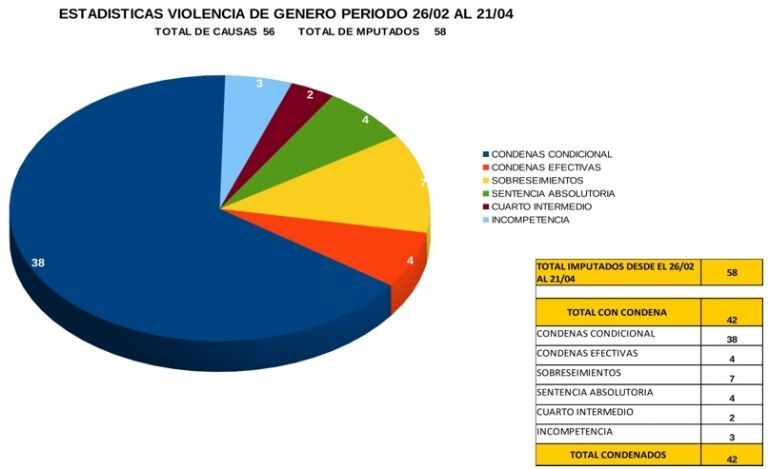 Según manifestó el Ministerio Público Fiscal, el mayor número de denuncias se realizaron en la UFI Cavig y UFI Flagrancia. Y en estos últimos dos meses se han concretado 121 sentencias condenatorias.