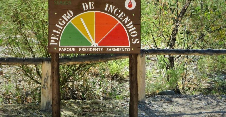 Por otra parte, en Parque Presidente Sarmiento, otra área protegida habilitada para realizar visitas guiadas, fue colocado un cartel indicador de peligro de incendio. El cartel, cuyas medidas rondan una altura de 1.60 metro y un ancho de 1.20 metros, fue realizado en madera, que se caló y pintó con los colores de un semáforo.