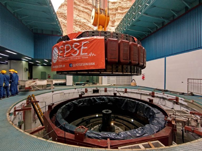El rotor, que junto con el estator son los encargados de transformar la energía mecánica en energía eléctrica, estará fuera de su lugar aproximadamente hasta agosto. Entonces se verá nuevamente el espectáculo, a la inversa, con el desafío del armado que es más complejo que el desarmado.