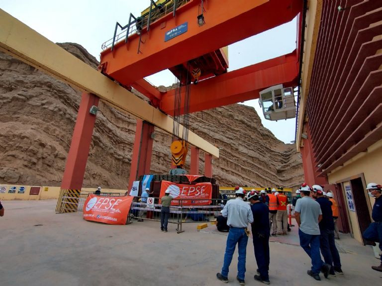 Una grúa con capacidad para mover 275 toneladas despierta al gigante cerca de las 11 de la mañana. Afuera el agua ruge con la misma fuerza que en épocas normales le da envión a esta turbina, ahora apagada desde febrero tras décadas de rodar a 400 vueltas por minuto. La empresa privada IMPSA junto a la estatal EPSE supervisan este hito que es extraer el rotor, corazón de la central.