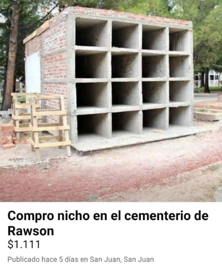 Y mientras esta búsqueda apuesta a la vida, también hay algunas que se encuadran en la vereda de enfrente, como por ejemplo un interesado en comprar un nicho en el cementerio de Rawson.