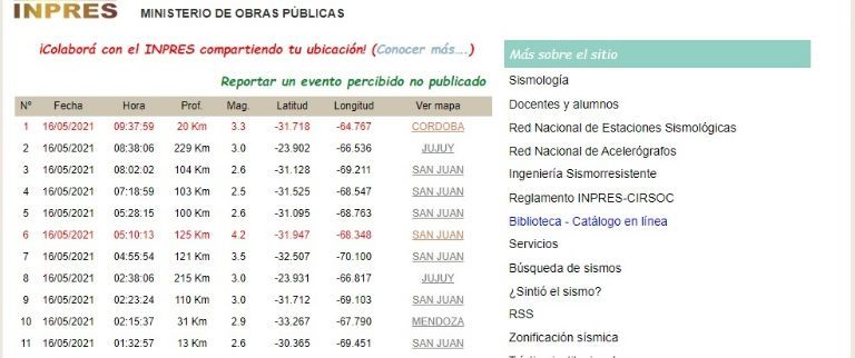 Pero este no es el único que se registró en lo que va del domingo. A las 02:23 hubo uno que tuvo 3.0 de magnitud y a las 04:55 uno de 3.5. De igual forma otros sismos menores también fueron detectados por el INPRES, aunque no se percibieron.