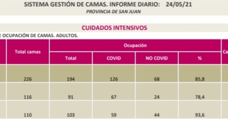 Este lunes, el Ministerio de Salud Pública informó la ocupación de las Unidades de Terapia Intensiva de San Juan. La cifra es alarmante: el 85,8% está cubierto.
