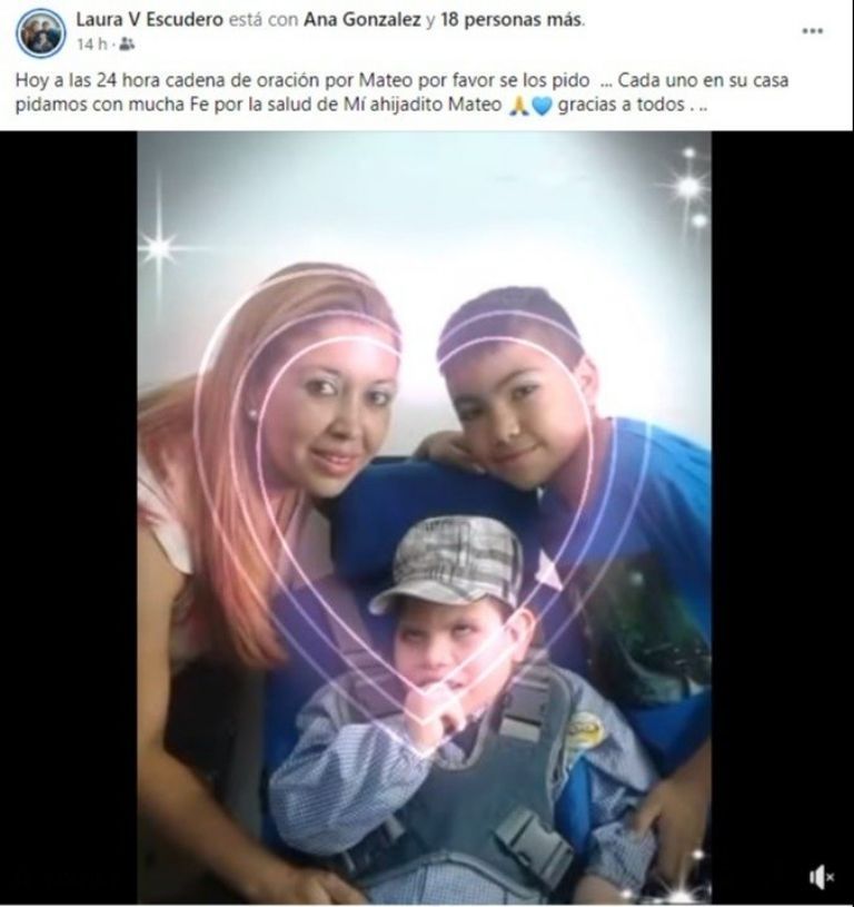 Mateo tenía ocho años, padecía encefalopatía crónica, que se había complicado con parálisis a nivel diafragmático y traqueo. Esto hizo que tenga un botón gástrico y estuviera conectado a un respirador todo el tiempo.