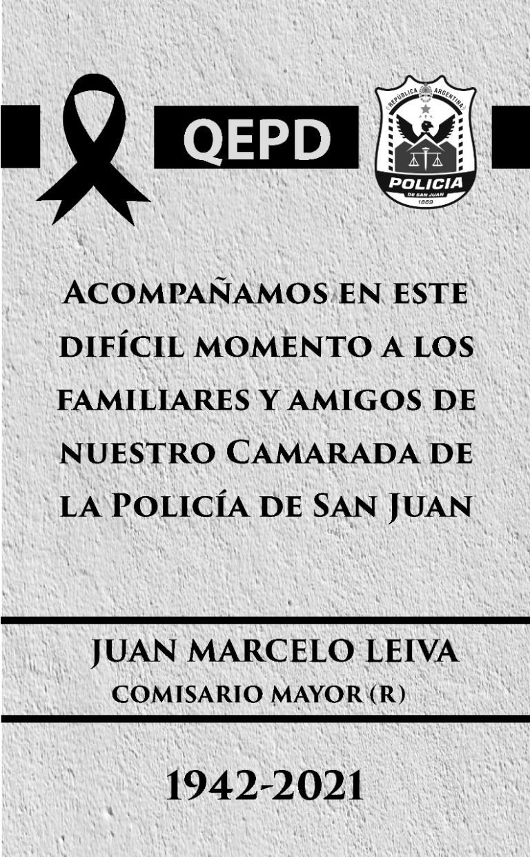 Enorme tristeza hubo en la Policía de San Juan, luego de que el pasado martes falleciera un histórico profesor de la Escuela de Policía. Se llamaba Juan Marcelo Leiva y tenía 79 años. Varias camadas de efectivos lo recordaron como un "gran maestro".