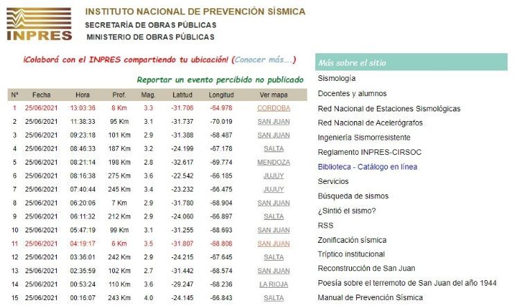 En esta imagen te mostramos los sismos que se registraron en lo que va del viernes, según los datos aportados por el Instituto de Prevención Sísmica.