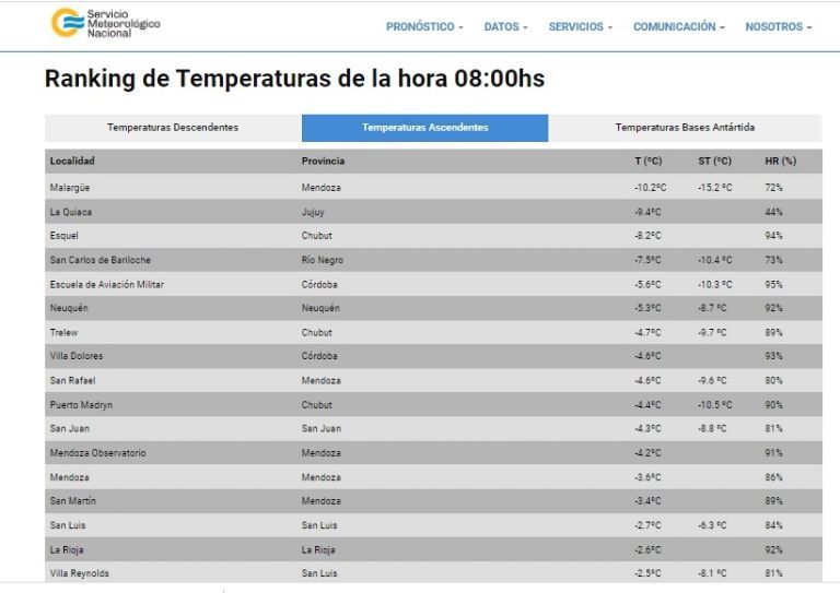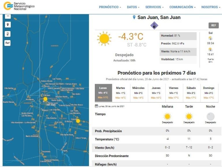 Con 4.3 grados bajo cero de temperatura real y una sensación térmica de 8.8 grados bajo cero, San Juan registró la temperatura más baja de este año al iniciar la jornada de este lunes invernal. También se convirtió en una de las más heladas del país, con el lugar undécimo entre las ciudades que marcaron bajos registros.