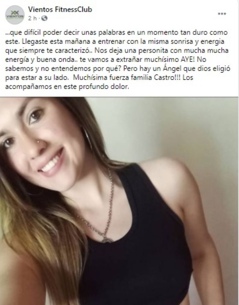 Desde Vientos Fitness Club, gimnasio a donde concurría la fallecida, también la despidieron muy tristes.