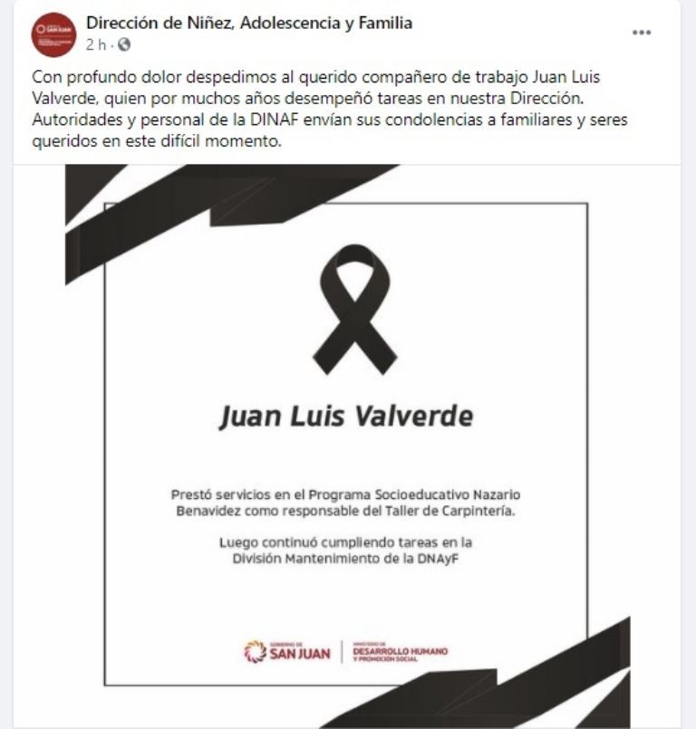 Se trata de Juan Luis Valverde. Según explicaron a Tiempo de San Juan desde la misma Dirección Juan había tenido coronavirus y se encontraba internado. Su deceso fue provocado por un paro cardíaco.
