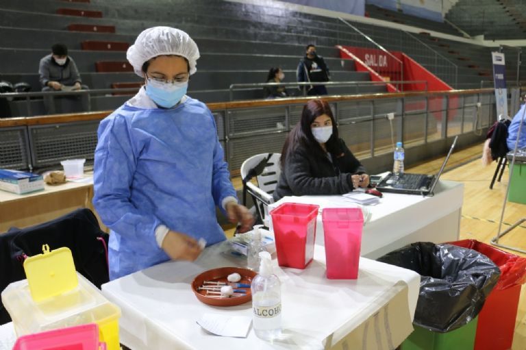 También dialogamos con una de las enfermeras a cargo de la vacunación. Vanina Sosa está en pleno campo de batalla colocando la primera dosis a los jóvenes.