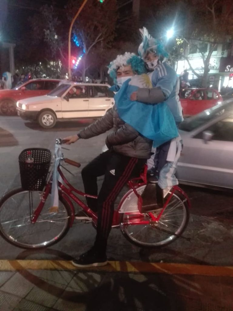 A Luciano y su hijo se subieron a su bicicleta y salieron a festejar el campeonato. Y tras varios minutos llegaron al corazón de San Juan para distrutar con los miles de sanjuaninos que se aglomeraron en Plaza 25 de Mayo.