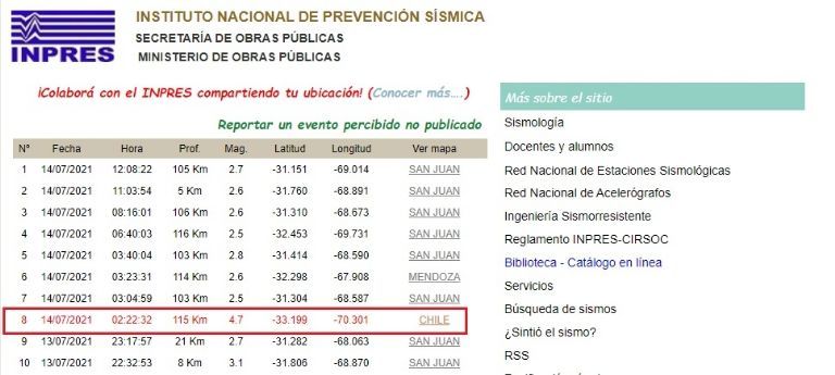 A las 02:22 un fuerte sismo en Chile se percibió en San Juan, según lo informado por el INPRES. El instituto informó además que tuvo una magnitud de 4.7 y una profundidad de 115 km.