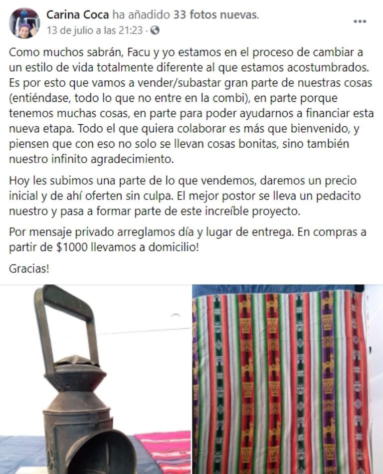 Una vez tomada la decisión, hace unos siete meses atrás, el primer paso fue conseguir y acondicionar una Mercedes Benz Sprinter modelo 99, la cual están acondicionando para convertirla en la casa donde vivirán y en el laboratorio donde llevarán a cabo su proyecto. Para acondicionarla y solventar los gastos del proyecto, Carina y Facundo están vendiendo todas sus cosas: desde tazas, bolsos, mantas, ropa y calzado, hasta hermosos retratos realizados por Carina.