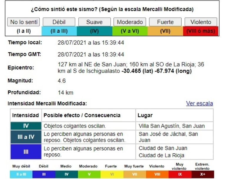 SUSCRIBITEFue a las 15:39 de este miércoles cuando, según datos aportados por el INPRES, el suelo sanjuanino se movió con un sismo que tuvo una magnitud de 4.6.