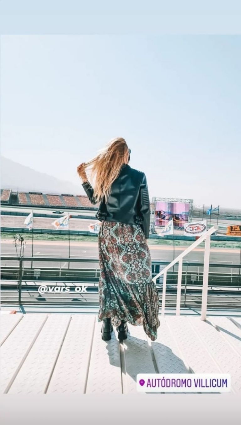 Este sábado, Neumann despilfarró su belleza en el cemento del Autódromo El Villicum, en Albardón. Con un vestido y una campera de cuero, la rubia causó sensación.