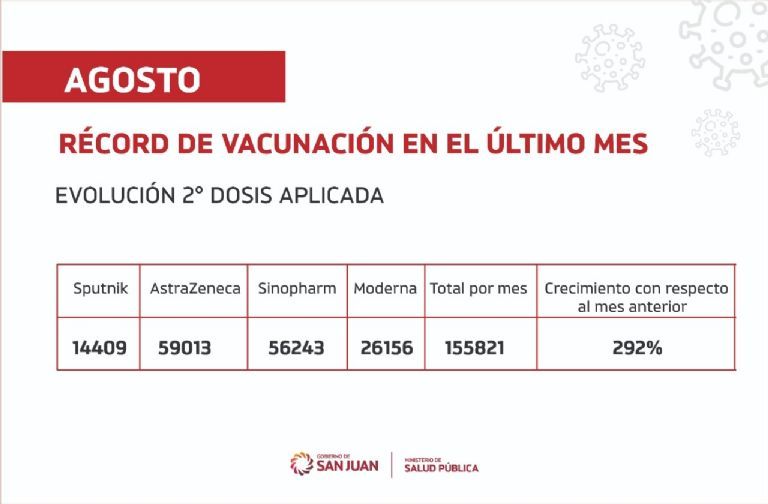 Respecto de la vacunación de adolescentes de 12 a 17 años con factores de riesgo, abierta el mes pasado, se informó este miércoles que se alcanzó hasta ahora un 40% del grupo que se estimó vacunar. “Esperábamos tener mayor respuesta de acuerdo a ese rango etario porque tienen comorbilidades, por eso salir a buscarlos sirve para mejorar la inmunización en nuestra provincia”, analizó la ministra de Salud local, Alejandra Venerando. En la conferencia, se difundieron las estadísticas de las segundas dosis aplicadas en San Juan: