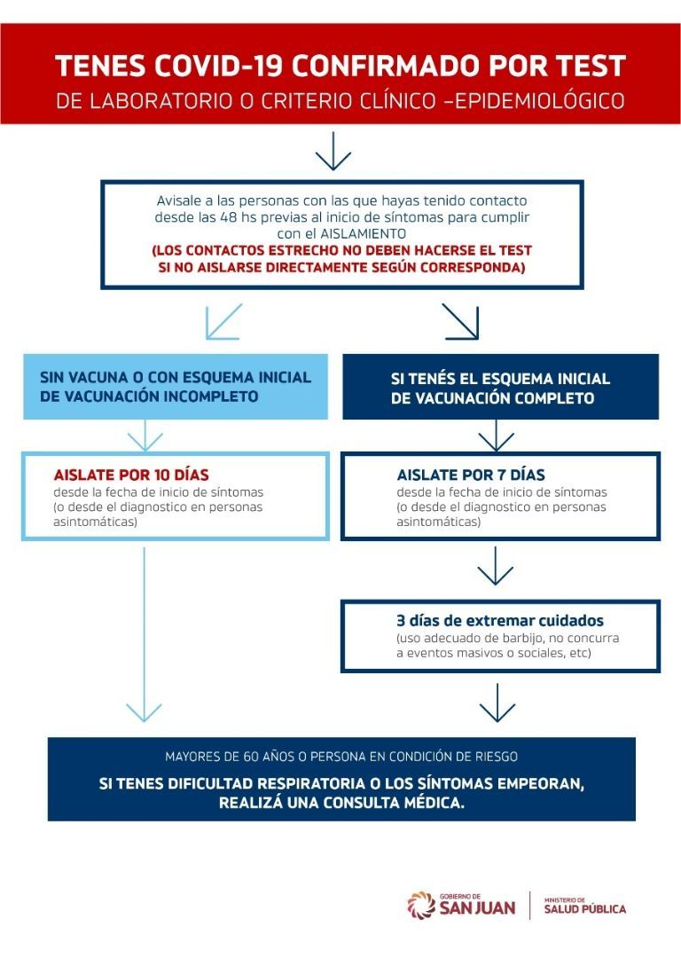 Se informa además que hay una página disponible para el público que brinda los resultados de los testeos y en todo caso bajar, por este medio, las certificaciones de aislamiento y alta: www.resultados.sanjuan.gob.ar.