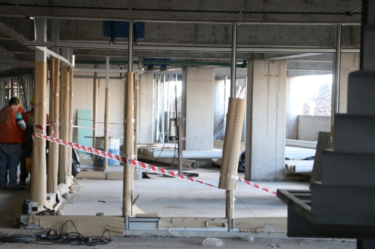 También se está avanzando en todo lo referente a la termomecánica, que incluye la instalación de enormes equipos de aire acondicionado. Todas las unidades están puestas. El lugar es semicerrado y tendrá climatización para verano e invierno.