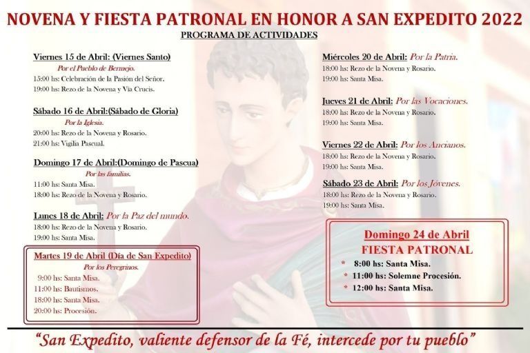 Nadie pondría en duda que San Expedito es uno de los santos más queridos en el país, y que en nuestra provincia, su devoción supera en miles a la población habitual que se ve en la localidad caucetera de Bermejo. Cada 19 de abril, el día que la liturgia recuerda el martirio y la muerte del santo, una multitud se dirige a venerarlo, a rogarle o a agradecerle al patrono de las causas justas y urgentes.