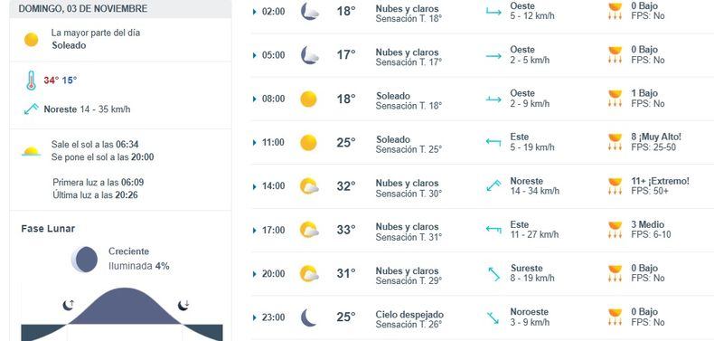 San Juan se prepara para un domingo mayormente despejado, ideal para actividades al aire libre, aunque se espera la presencia de nubes durante la madrugada. Las temperaturas oscilarán entre los 15°C y los 34°C, alcanzando su punto más alto cerca de las 17.